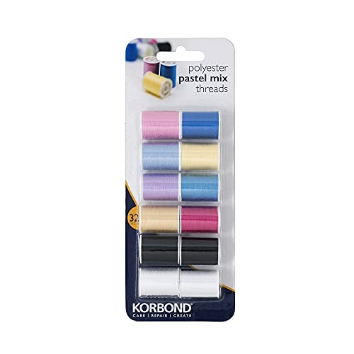 Korbond CORE Mix Polyester Thread Selection by Korbond-12 x 32m spools – 10 Colours – 384 metres – Hand and Machine Sewing, Repairs, Crafting