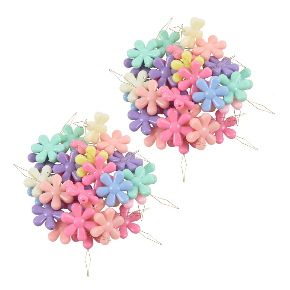 90Pcs Random Color Plastic+Metal Flower Head Wire Loop DIY Needle Threader Insertion Hand Machine Sewing Tool