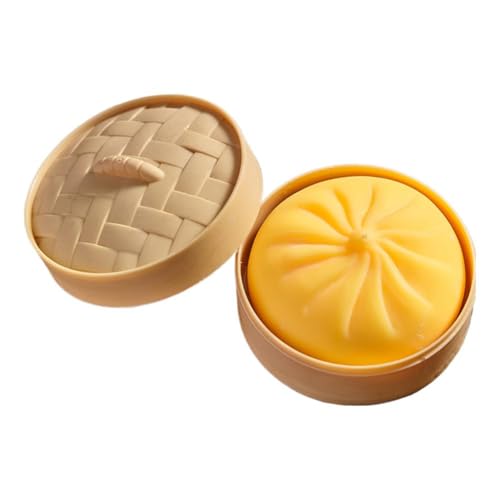 Squeeze Dumpling Jumbo, Squeeze Dough Ball Stress Relief Hand Toy With Steamer Box for Kids And Adults With Adhd (Yellow)