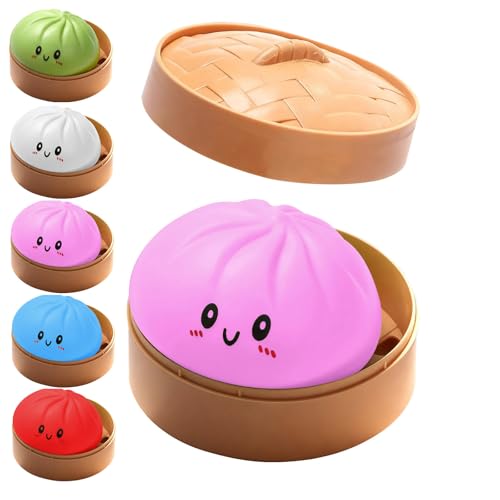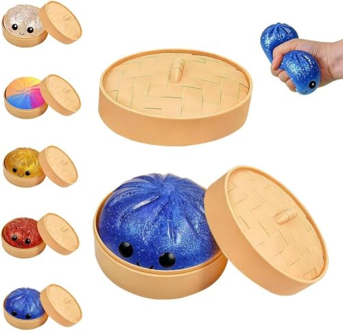 Glitter Dumpling,Glitter Dumpling Squishies,Mystery Squish y DumplingBox,Dumplings Stress Balls Fidget Sensory Balls,Squeeze Dough Ball Stress Relief Hand with Food Steamer,Relaxation Gift
