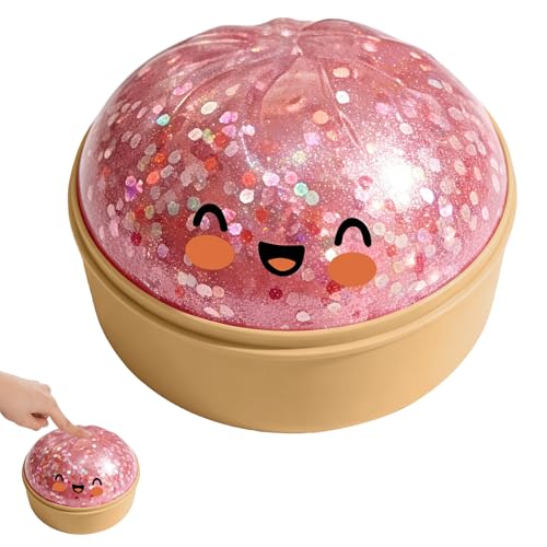Dumpling Squishies Toy Mystery Box, Giant Glitter Dumpling, Colorful Dumplings Stress Balls Fidget Sensory Toy,Squeeze Dough Ball Stress Relief Hand Toys Food Steamer Stretchy Toys (Pink)