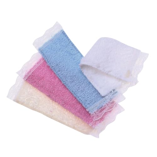 KONTONTY 4pcs Miniature Doll House Bath Towels Set Small Lace Hand Towels for Doll Bathroom Decor White Beige Pink Blue for Dollhouse Accessories