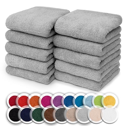 NatureMark Set of 10 Washcloths Made of 100% Cotton - Soft and Absorbent Face and Hand Towels - Practical for Bathroom and Kitchen - 30 x 30 cm, Silver Grey
