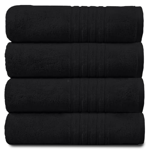 GC GAVENO CAVAILIA Ultra Soft Hand Towels For Bathroom, 4 Pk Egyptian Cotton Towels, Highly Water Absorbent, Black, 50x80 Cm, (555995)