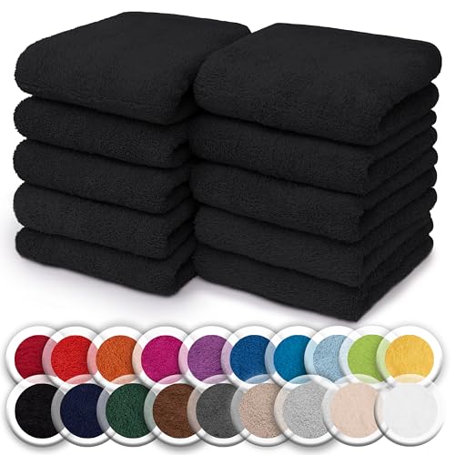 NatureMark Set of 10 Washcloths Made of 100% Cotton - Soft and Absorbent Face and Hand Towels - Practical for Bathroom and Kitchen - 30 x 30 cm, Black