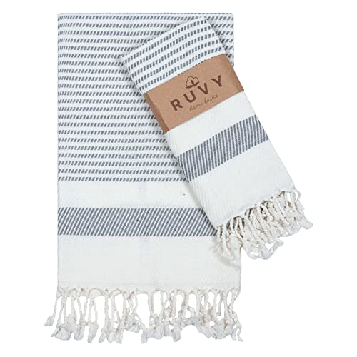 Ruvy Home Basics Turkish Hand Towels for Bathroom Set of 2 | 18x40, 100% Cotton | Bathroom Hand Towels & Decorative Hand Towels for Bathroom, Kitchen, Yoga, Gym, Spa, Tea, Dishcloth, Face- Light Grey