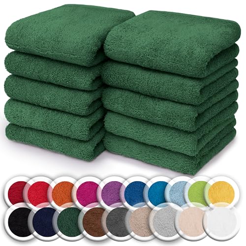 NatureMark Set of 10 Washcloths Made of 100% Cotton - Soft and Absorbent Face and Hand Towels - Practical for Bathroom and Kitchen - 30 x 30 cm, Dark Green