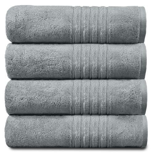 American Soft Linen Luxury Hand Towels for Bathroom, 100% Cotton Turkish 4 Piece Hand Towel Set, 600 GSM Hand Face Towels for Kitchen, Light Grey Hand Towels