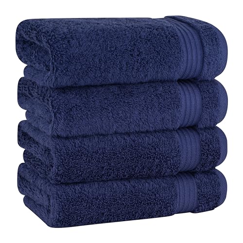 American Soft Linen Luxury Hand Towels for Bathroom, 100% Cotton Turkish 4 Piece Hand Towel Set, 600 GSM Hand Face Towels for Kitchen, Navy Blue Hand Towels