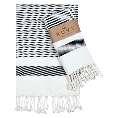 Ruvy Home Basics Turkish Hand Towels for Bathroom Set of 2 | 18"x40", Cotton | Bathroom & Decorative Hand Towels for Kitchen Dishcloth, Tea, Yoga, Face, Gym - Black