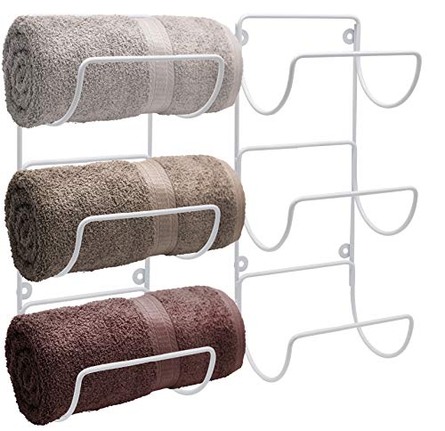 Sorbus Towel Rack Holder Set - Wall Mounted Storage Organizer for Towels, Washcloths, Hand Towels, Linens, Ideal for Bathroom, Spa, Salon, Modern Design (White)