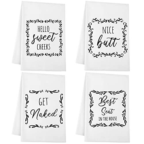 4 Pieces Funny Hand Towel with Sayings Decorative Kitchen Towels Rustic Bath Hand Towels for Bathroom Kitchen Farmhouse Restroom, 16 x 24 Inch