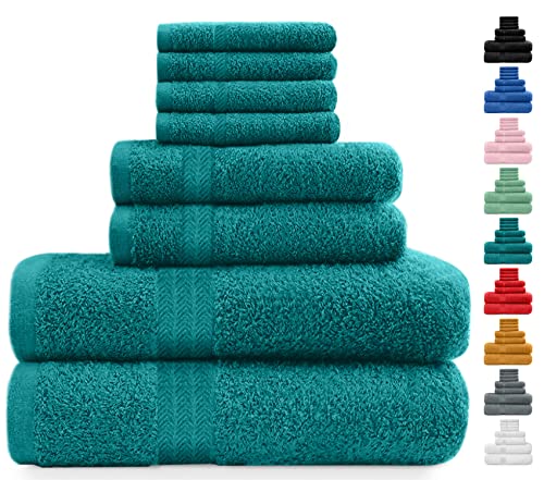 Midland Bedding 8 Piece Bale Towel Set, Cotton Towels Set - 4 Wash Cloths/Face Towels, 2 Bath Towels and 2 Hand Towels for Bathroom. 400 GSM Thread Count (Teal)