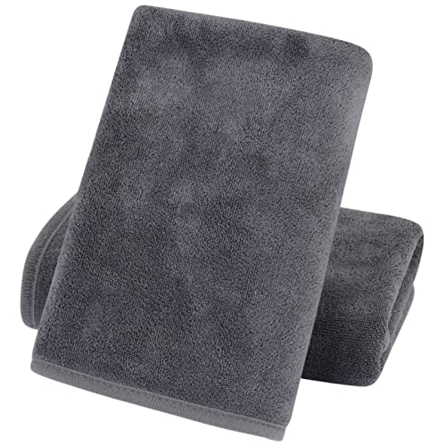 KinHwa Microfibre Soft Hand Towels for Bathroom Flannel Thick Face Towels 40cm x 76cm Small Fast Drying Wash Cloth for Bath, Spa, Gym 2pack Grey