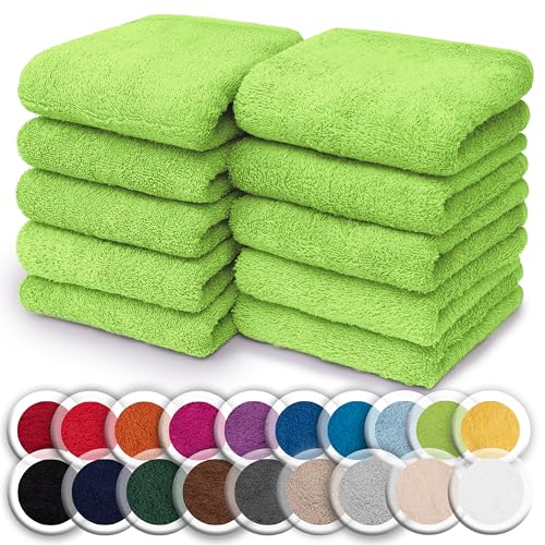 NatureMark Set of 10 Washcloths Made of 100% Cotton - Soft and Absorbent Face and Hand Towels - Practical for Bathroom and Kitchen - 30 x 30 cm, Apple Green