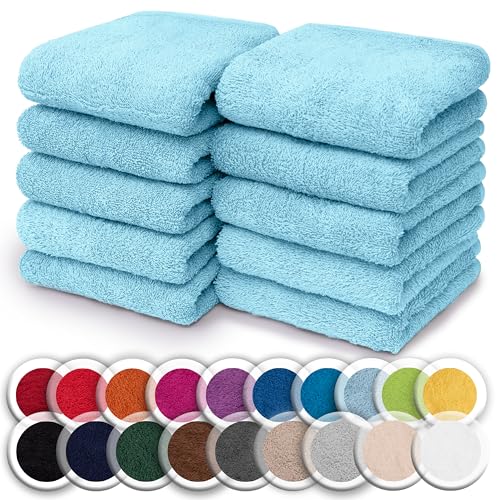 NatureMark Set of 10 Washcloths Made of 100% Cotton - Soft and Absorbent Face and Hand Towels - Practical for Bathroom and Kitchen - 30 x 30 cm, Light Blue