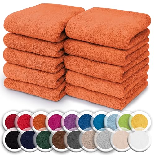NatureMark Set of 10 Washcloths Made of 100% Cotton - Soft and Absorbent Face and Hand Towels - Practical for Bathroom and Kitchen - 30 x 30 cm, Terracotta