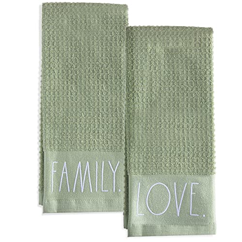 Rae Dunn Set of Hand Towels for Kitchen and Bathroom, 100% Cotton, Embroidered Dish Towels, Decorative Hand Towels, Sage- Love/Family, 2 Pack