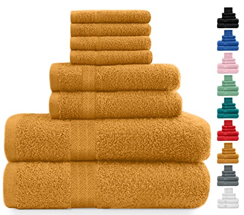 Midland Bedding 8 Piece Bale Towel Set, Cotton Towels Set - 4 Wash Cloths/Face Towels, 2 Bath Towels and 2 Hand Towels for Bathroom. 400 GSM Thread Count (Mustard)