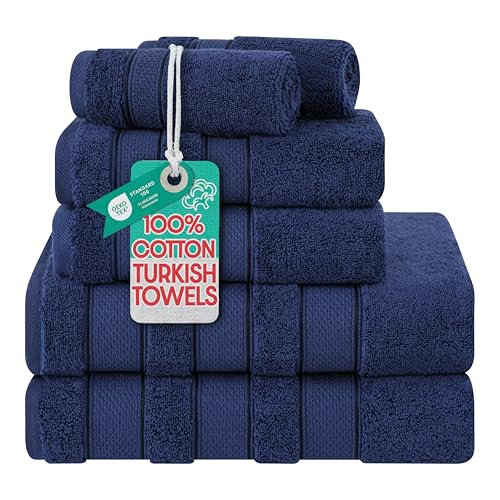 American Soft Linen Bath Towel Set Luxury Salem Collection 100% Turkish Combed Cotton 6 Piece Towel Set Soft and Absorbent 2 Bath Towels 2 Hand Towels 2 Washcloths for Bathroom Shower Towels Navy Blue