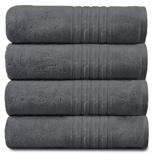 American Soft Linen Luxury Hand Towels for Bathroom, 100% Cotton Turkish 4 Piece Hand Towel Set, 600 GSM Hand Face Towels for Kitchen, Dark Gray Hand Towels