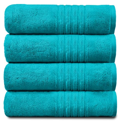 GC GAVENO CAVAILIA Ultra Soft Hand Towels For Bathroom, 4 Pk Egyptian Cotton Towels, Highly Water Absorbent, Teal, 50x80 Cm, 555919