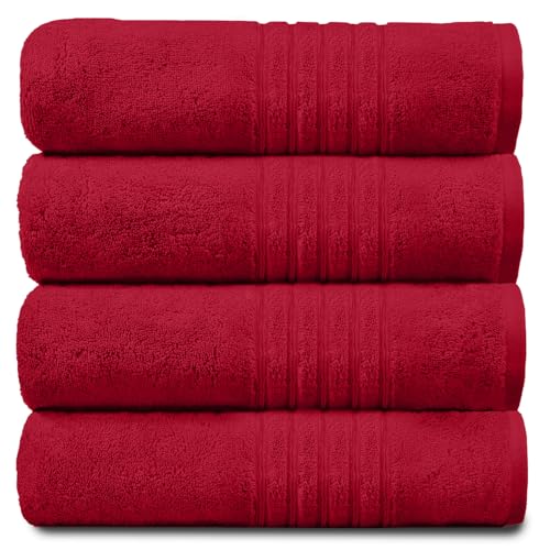 GC GAVENO CAVAILIA Ultra Soft Hand Towels For Bathroom, 4 Pk Egyptian Cotton Towels, Highly Water Absorbent, Red, 50x80 Cm, 41148111
