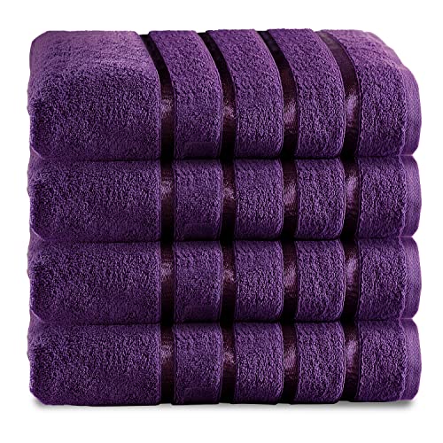 GC GAVENO CAVAILIA Hand Towels for Bathroom, 500 GSM Gym Towel, Highly Water Absorbable Towel Set, Aubergine, 50X80, 4 Pk Hand Towel (554608)