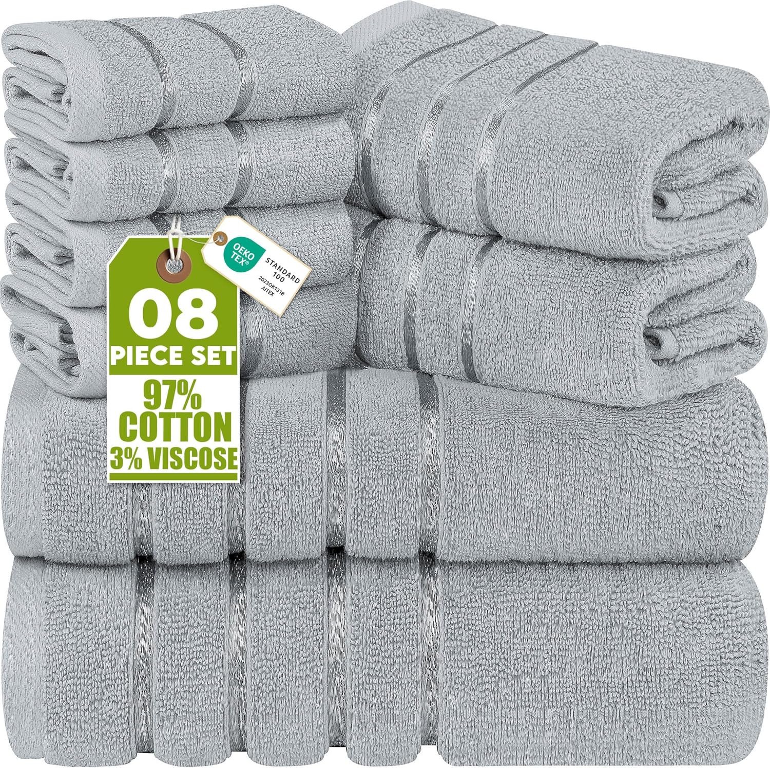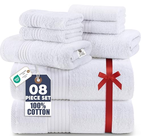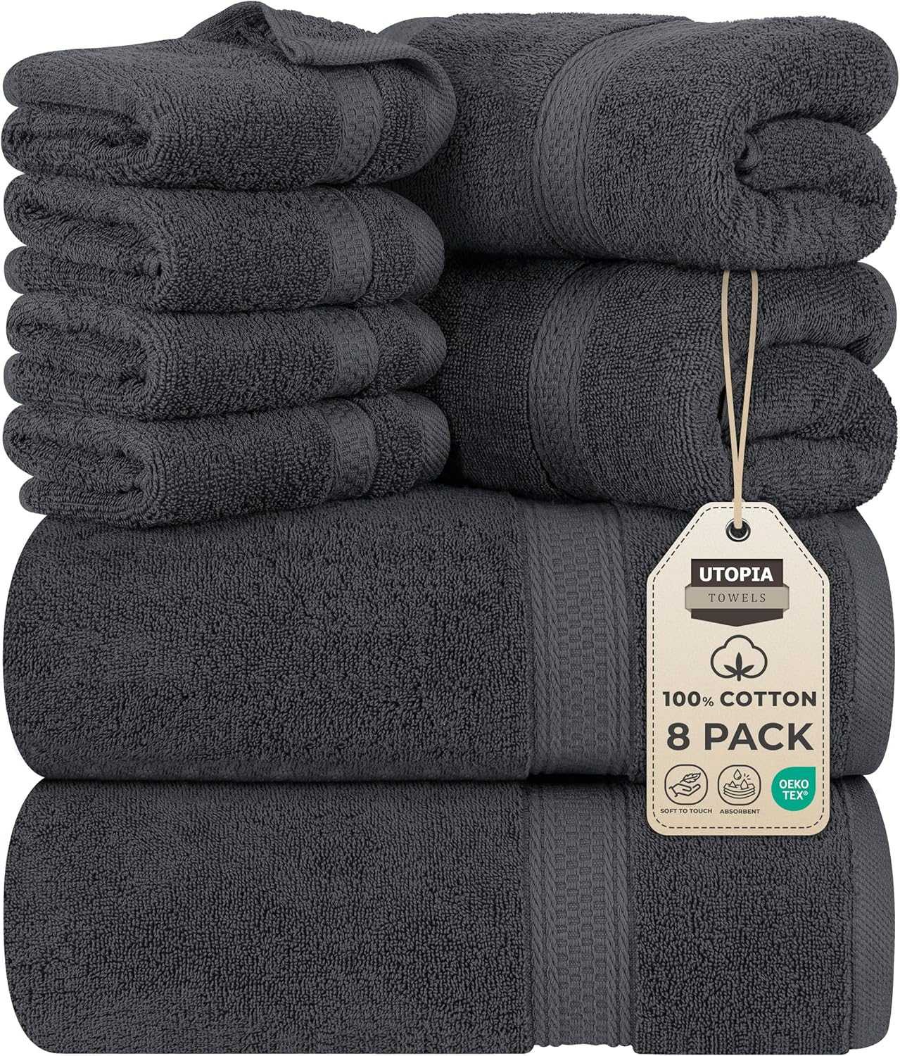 Utopia Towels Premium 8 Piece Towel Set, 2 Bath Towels, 2 Hand Towels and 4 Washcloths, 100% Ring Spun Cotton Highly Absorbent Towels for Bathroom, Sports & Hotel