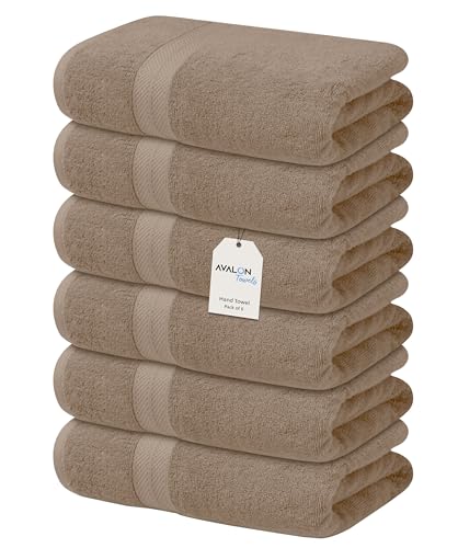 Avalon Towels Luxury Hand Towels (Pack of 6) Size 16x28 Inches - Premium Cotton, Soft and Highly Absorbent Hand Towels for Bathroom, 600 GSM Face Towels, Hotel & Spa Quality, Quick Dry (Beige)