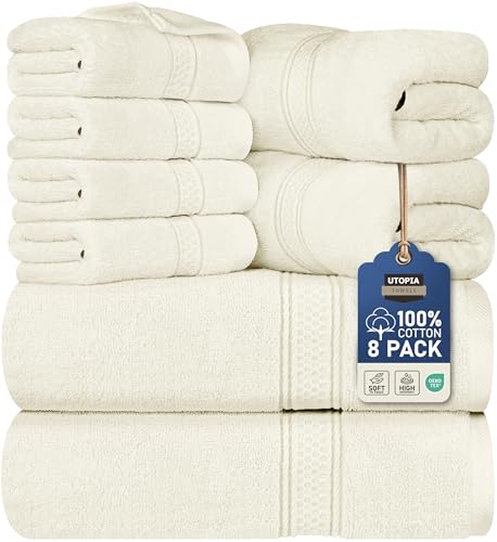 Utopia Towels 8 Piece Towel Set - 2 Bath Towels, 2 Hand Towels and 4 Washcloths Cotton Hotel Quality Super Soft and Highly Absorbent (Ivory)