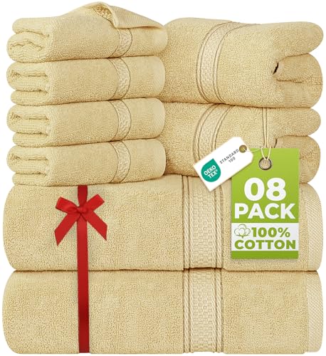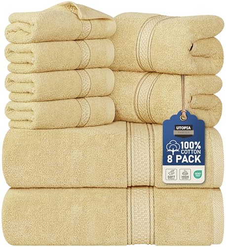 Utopia Towels 8-Piece Premium Towel Set, 2 Bath Towels, 2 Hand Towels, and 4 Wash Cloths, 600 GSM 100% Ring Spun Cotton Highly Absorbent Towels for Bathroom, Gym, Hotel, and Spa (Beige)
