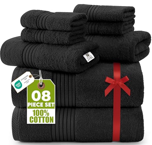 Utopia Towels 8-Piece Premium Towel Set, 2 Bath Towels, 2 Hand Towels, and 4 Wash Cloths, 100% Ring Spun Cotton Highly Absorbent Towels for Bathroom, Sports, and Hotel (Black)
