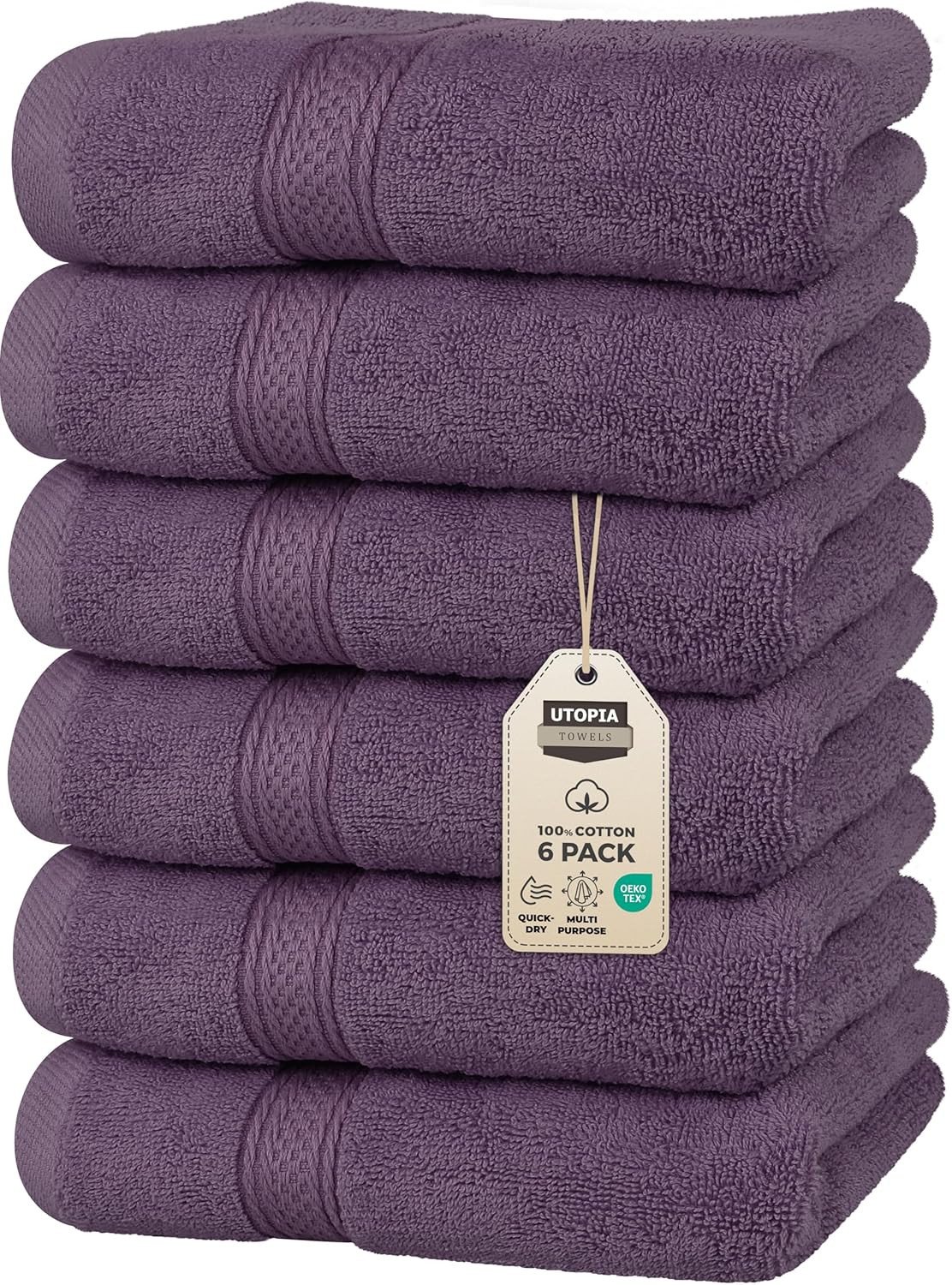 Utopia Towels - Premium Hand Towels - 100% Combed Ring Spun Cotton, Ultra Soft and Highly Absorbent, Extra Large Thick Hand towels 41 x 71 cm, Hotel & Spa Quality Hand Towels (6-Pack) (Plum)