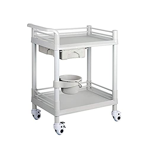 Storage Trolley Multifunctional,Kitchen Utility Cart with Handle,2/3 Tier Abs Beauty Salon Trolley with Brake Wheel,100Kg Capacity Movable Hand Trucks,2 Tier,with Drawer/2 Tier/with Drawer