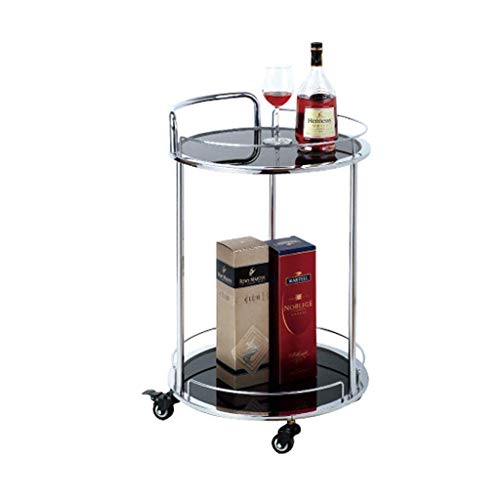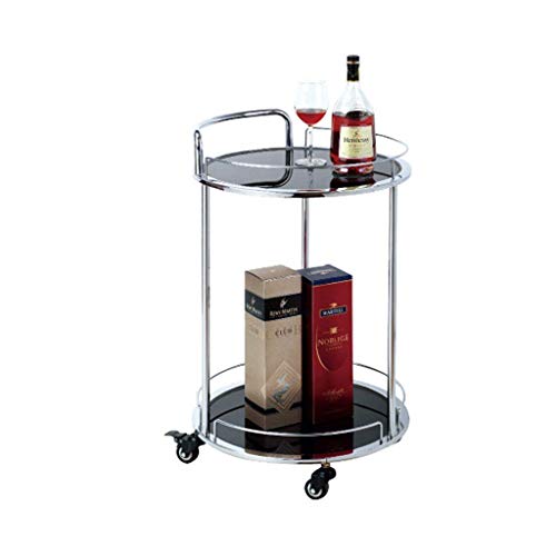 HUIBBGO Multifunctional Storage Trolley,Service Utility Carts Hotel Service Car, Double Layer with Guardrail Stainless Steel Tea Trolley Storage Trolleys Hand Trucks,Brown,Black