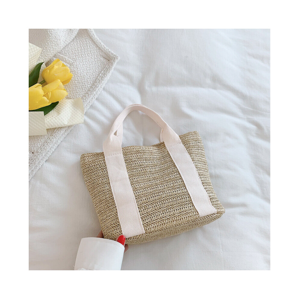 Fashion Hasp Ladies Weave Handbags Summer Beach Female Rattan Small Purse over The Shoulder Bag (Khaki, One Size)