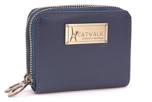 Catwalk Collection Handbags - Ladies Small Leather Zip Purse - Women's Wallet - Coin Purse with 13 Card Slots - RFID Protection - Isla - Blue
