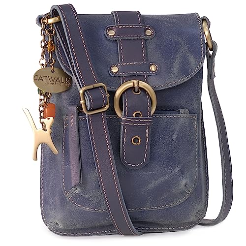 Catwalk Collection Handbags - Ladies Small Cross Body Bag - Small Messenger Bag - Distressed Leather - Adjustable Shoulder Strap - Jolene - Blue