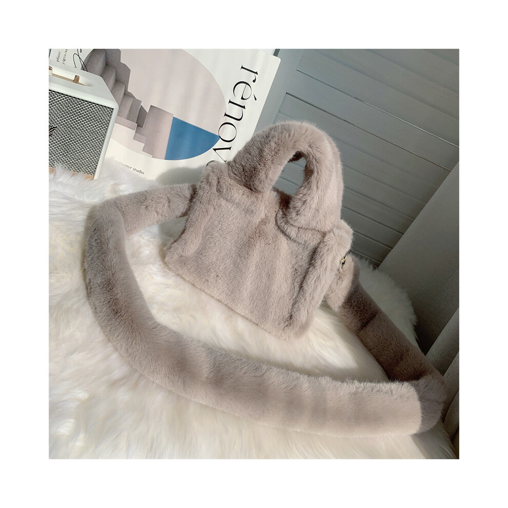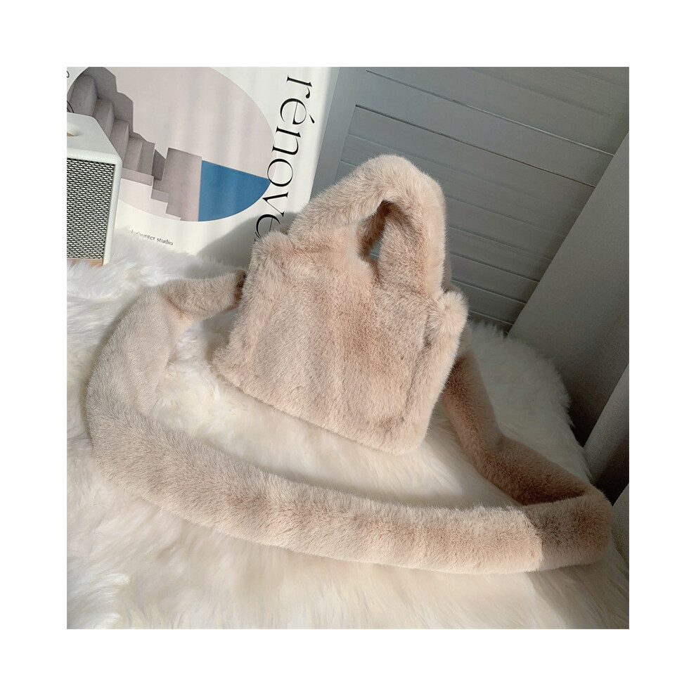 (Khaki) Women Fluffy Satchel Bag Soft Casual Furry Handbags Ladies Dating Bag (Black)