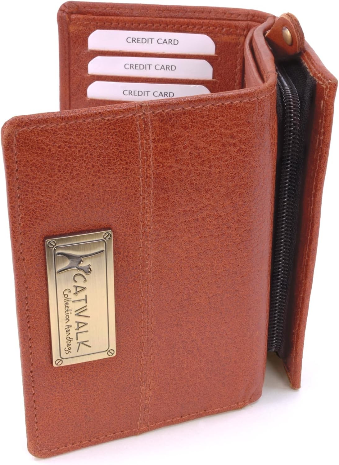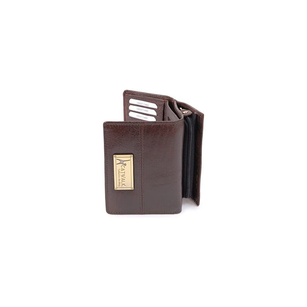 Catwalk Collection Handbags - Ladies Medium Leather Purse - Women's Trifold Wallet with 8 Card Slots & Zip Coin Pocket - RFID - Victoria - Brown