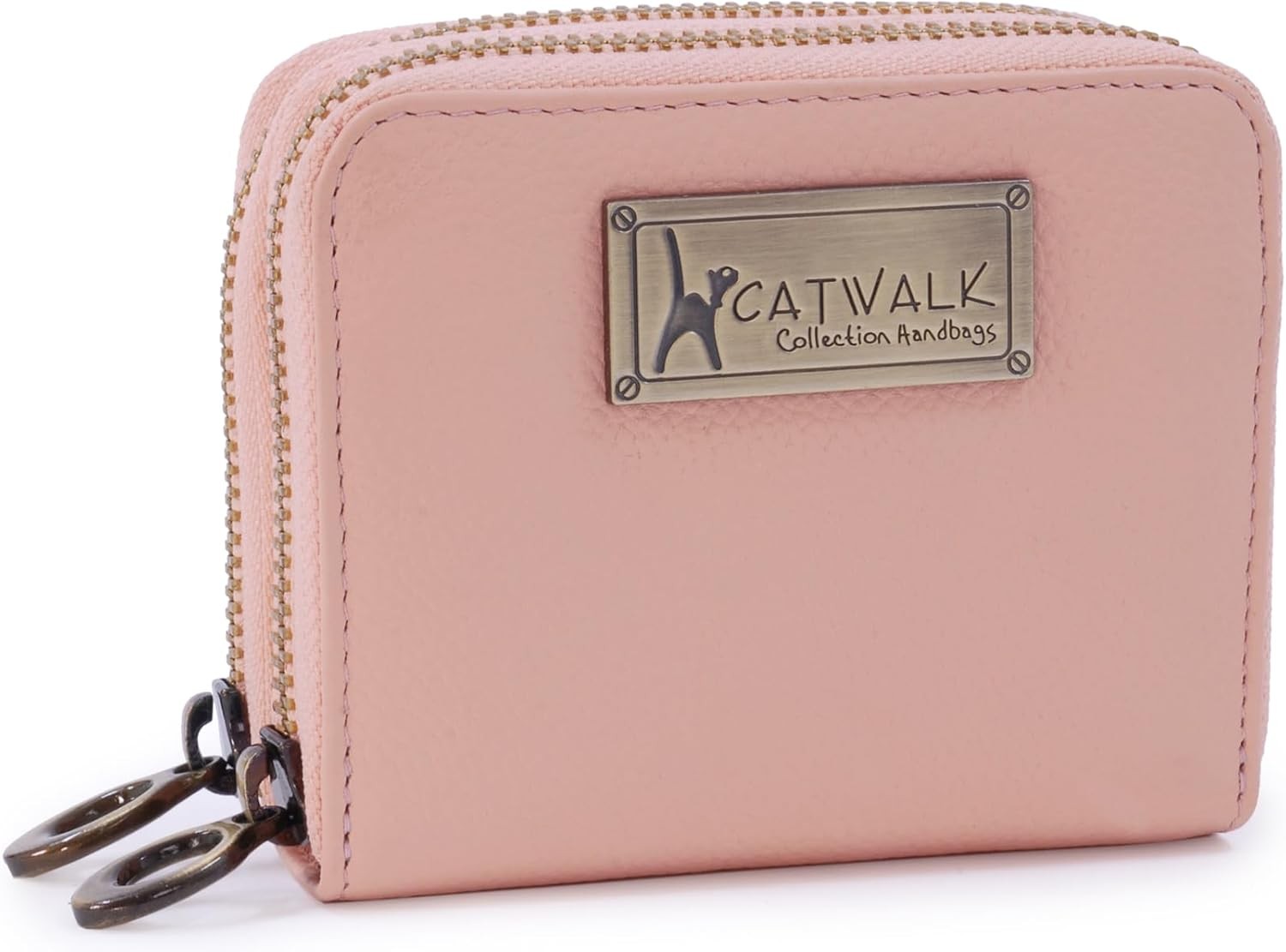 Catwalk Collection Handbags - Ladies Small Leather Coin Purse - Zip Pouch with Credit Card and Coin Pocket - RFID - Gift Boxed - Mimi - Pink Gold