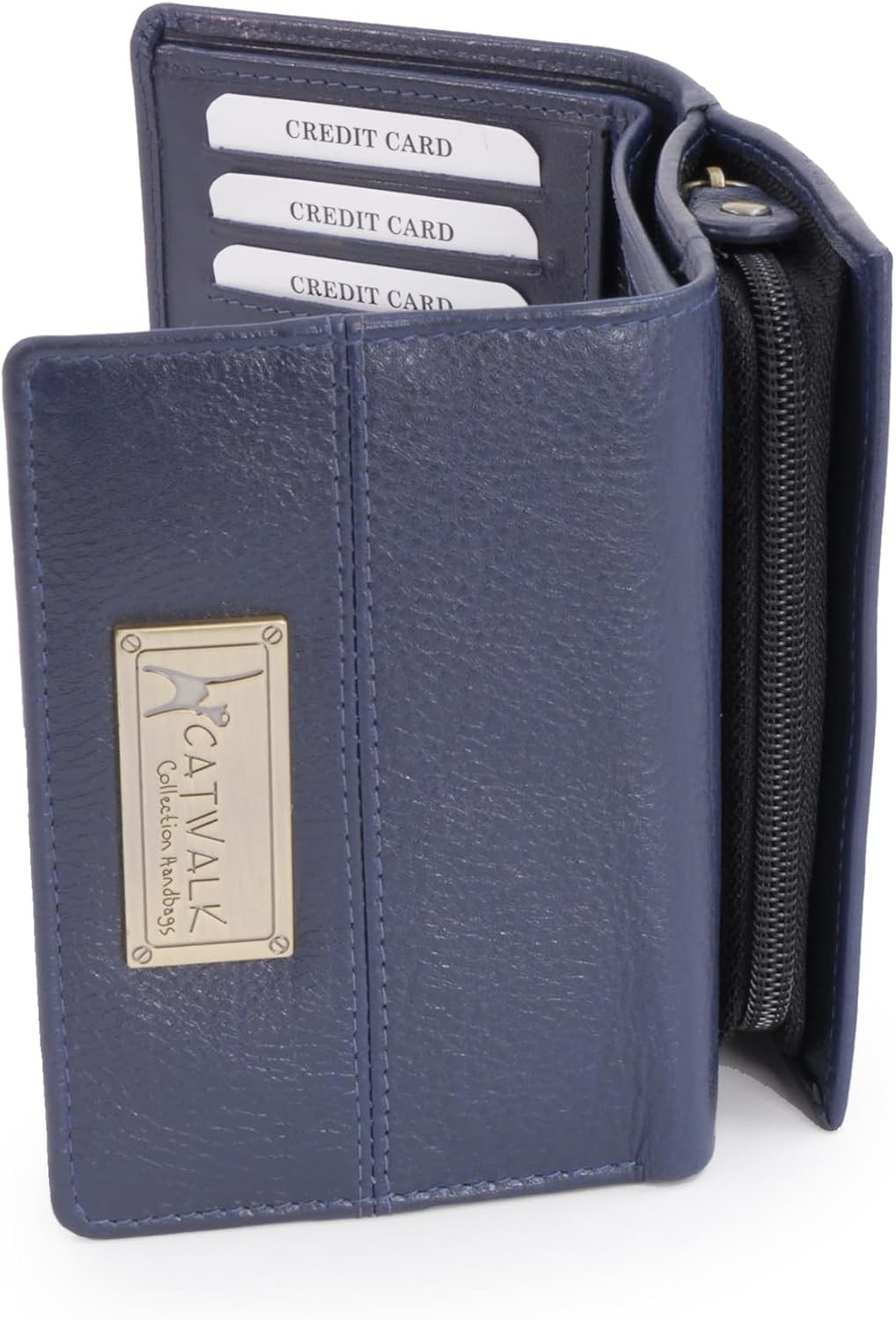 Catwalk Collection Handbags - Ladies Medium Leather Purse - Women's Wallet with 8 Card Slots & Coin Pocket - RFID Protection - Gallery - Blue
