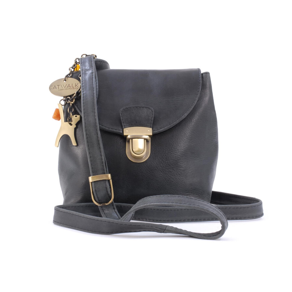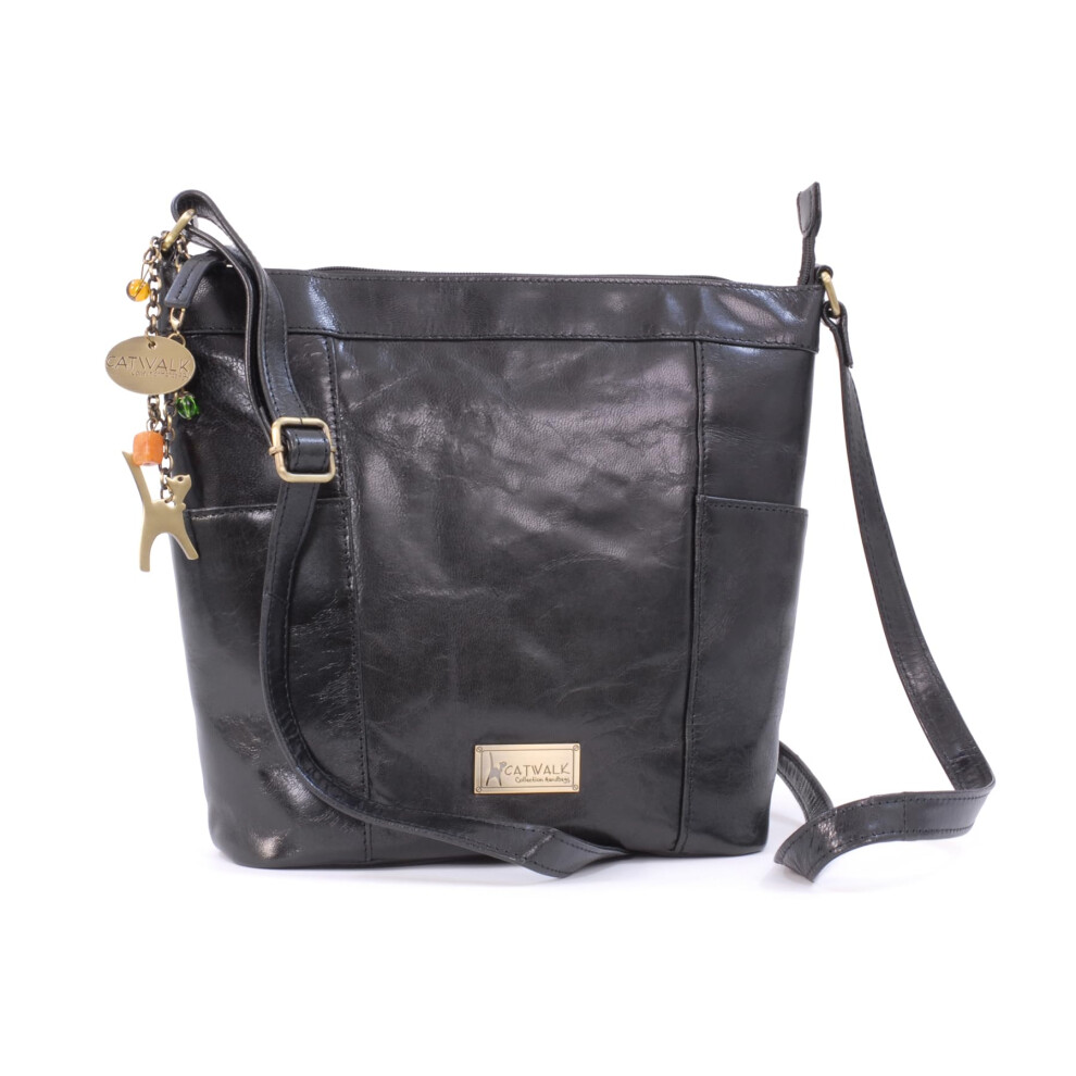 Catwalk Collection Handbags - Ladies Leather Cross Body Bag - Small/Medium Handbag With Adjustable Shoulder Strap - Frankie - Black