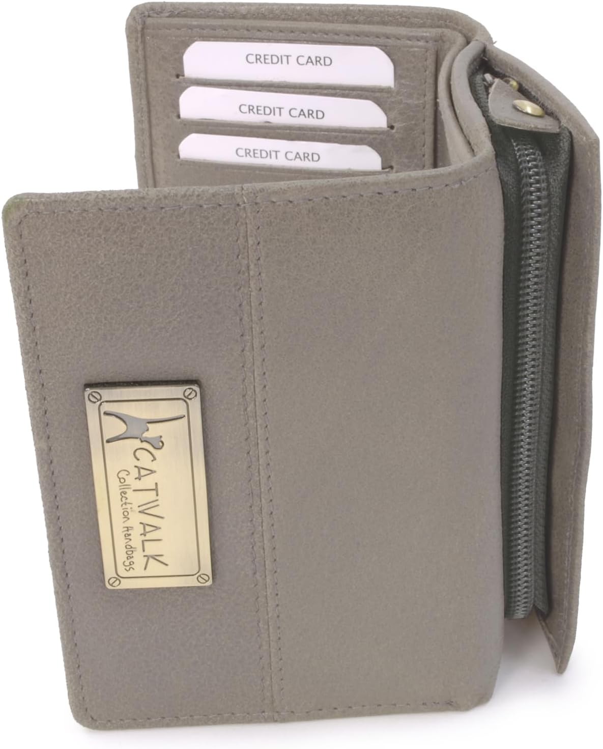 Catwalk Collection Handbags - Ladies Medium Leather Purse - Women's Wallet with 8 Card Slots & Coin Pocket - RFID Protection - Gallery - Grey