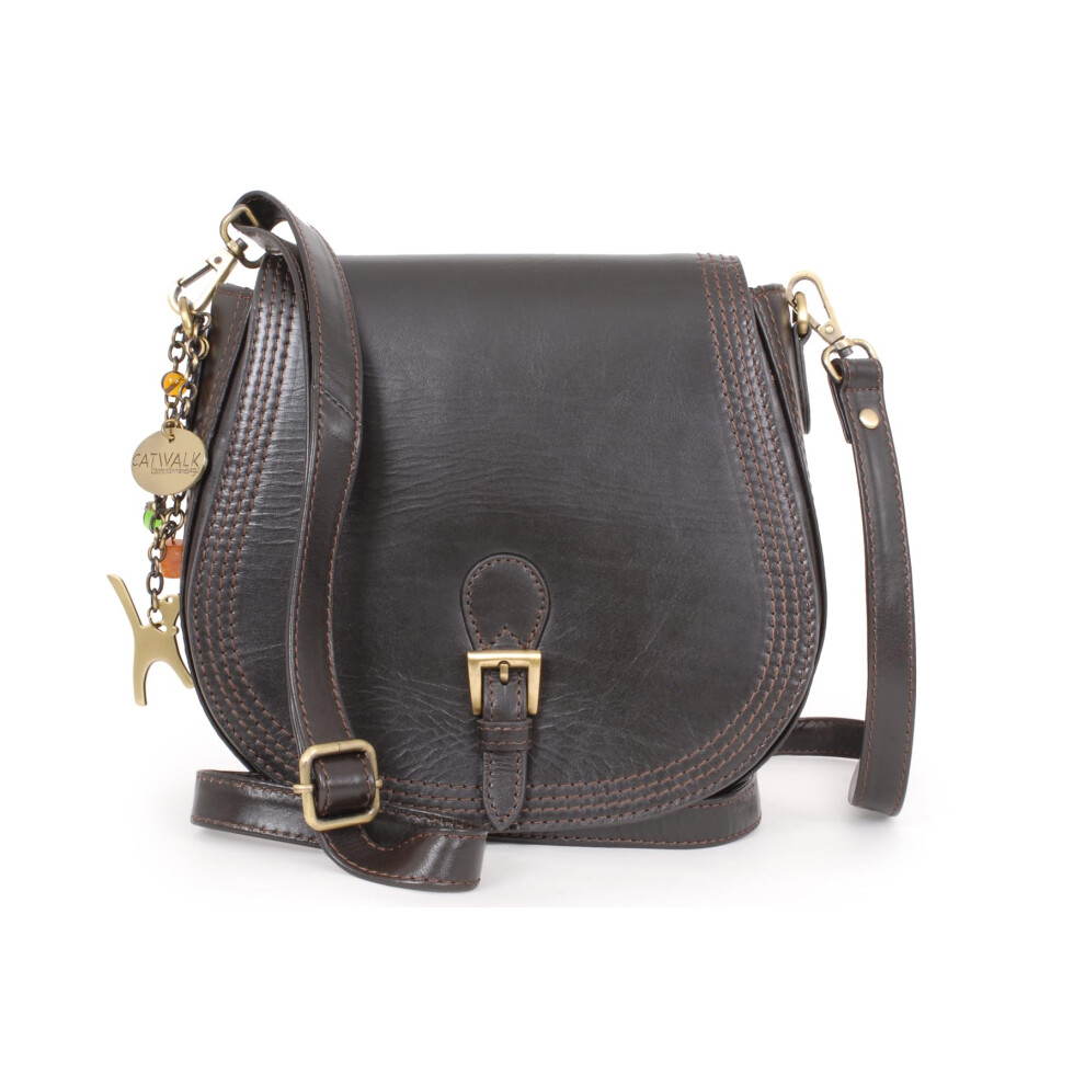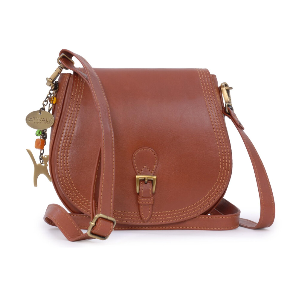 Catwalk Collection Handbags - Ladies Leather Saddle Bag - Medium Cross Body Bag - Adjustable Shoulder Strap - Isabella - Brown