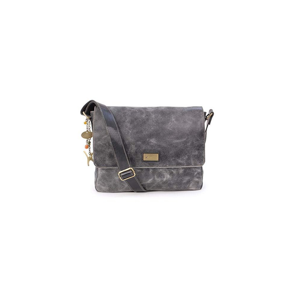 CATWALK COLLECTION HANDBAGS - Ladies Large Distressed Leather Messenger Bag - Women's Cross Body Organiser Work Bag - Laptop/Tablet Bag - SABINE L -