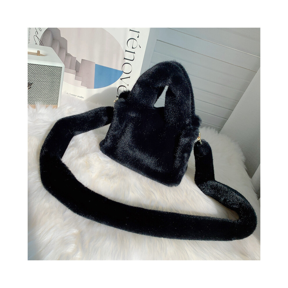 (Black) Women Fluffy Satchel Bag Soft Casual Furry Handbags Ladies Dating Bag (Black)