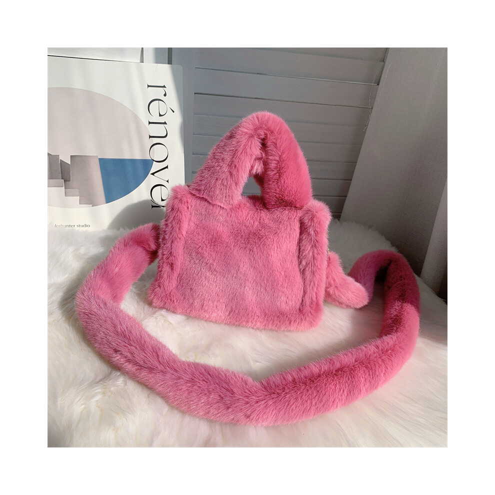 (Pink) Women Fluffy Satchel Bag Soft Casual Furry Handbags Ladies Dating Bag (Black)