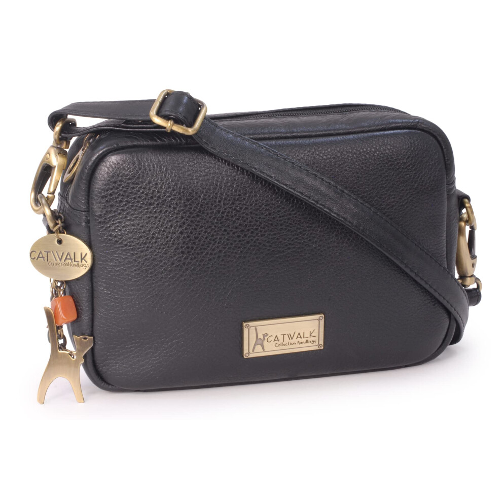 Catwalk Collection Handbags - Ladies Small Leather Cross Body Bag - Women's Messenger Camera Bag - Adjustable Strap - Polly - Black